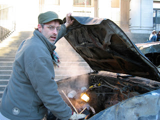 This past Friday, I volunteered at PuSH Festival for ATSA, a Montreal-based environmental group who'd exploded an SUV about five years ago in order to make the environmental statement du jour: SUV's guzzle too much gas, ruin the environment, are unsafe to drive, and the war in Iraq helps keep the oil machine well-tuned.